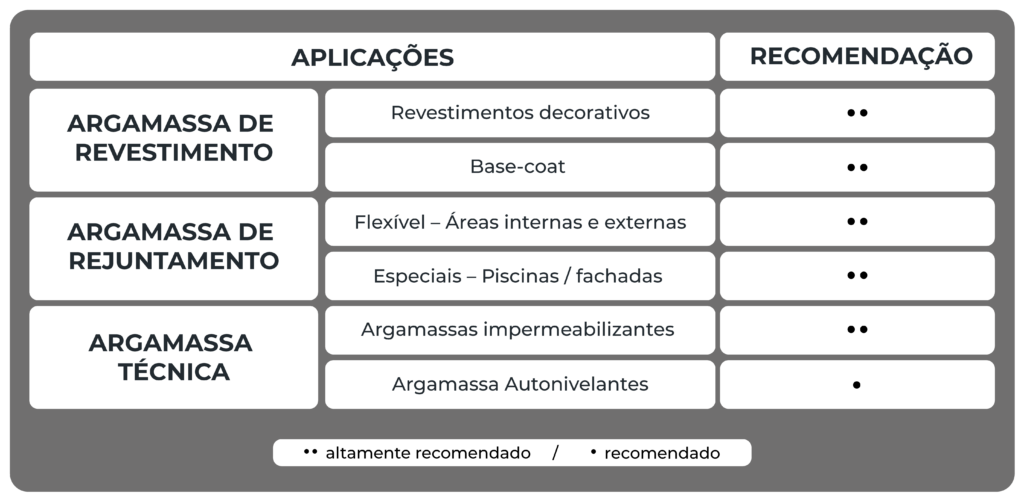 O resultado é uma argamassa mais estável, durável e resistente às variações ambientais, características fundamentais para aplicações em ambientes internos e externos.