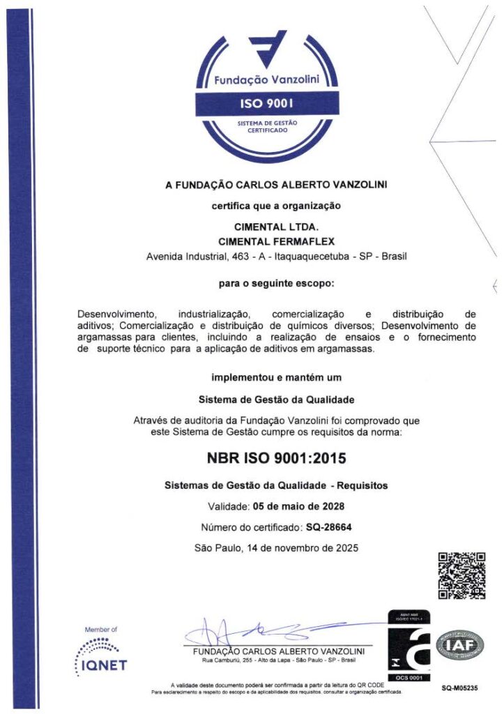 - Organização Certificada: CIMENTAL LTDA. / CIMENTAL FERMAFLEX.